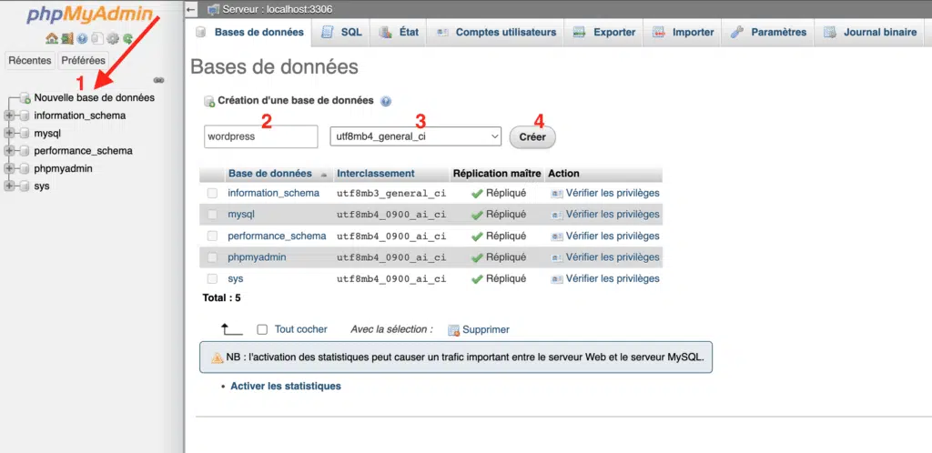 Étape 4 : Créer une Base de Données depuis phpMyAdmin pour WordPress